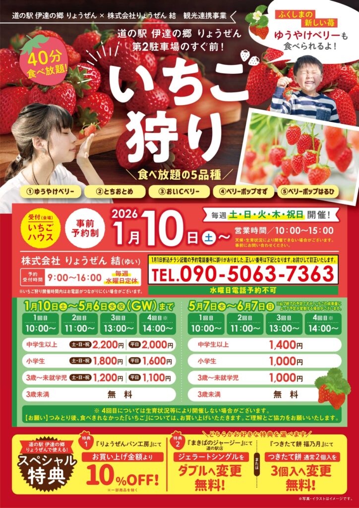 1/10(土)~いちご狩り開催(道の駅伊達の郷りょうぜん×株式会社りょうぜん結)