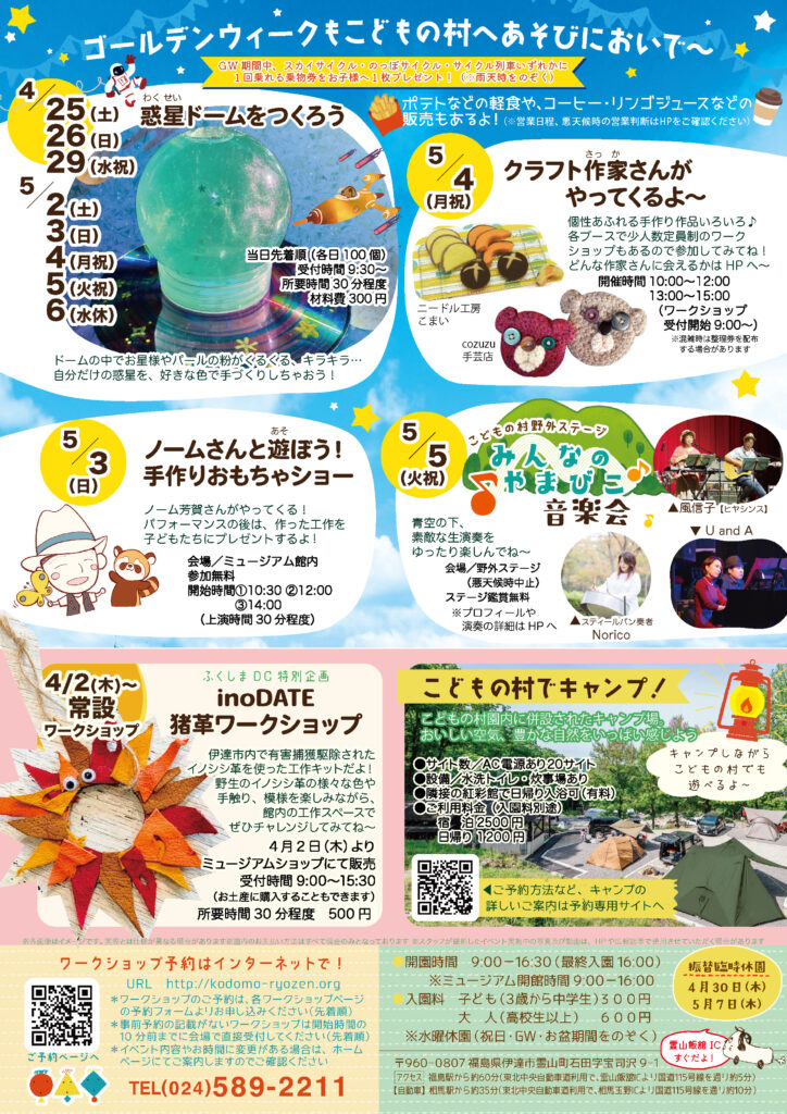 ゴールデンウィークのイベントなど、その他詳細は下記チラシをご覧ください。